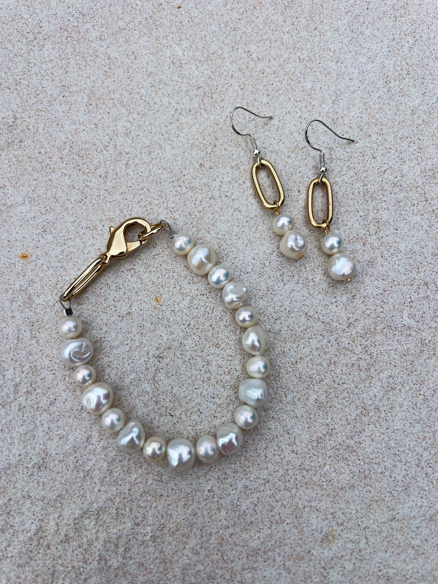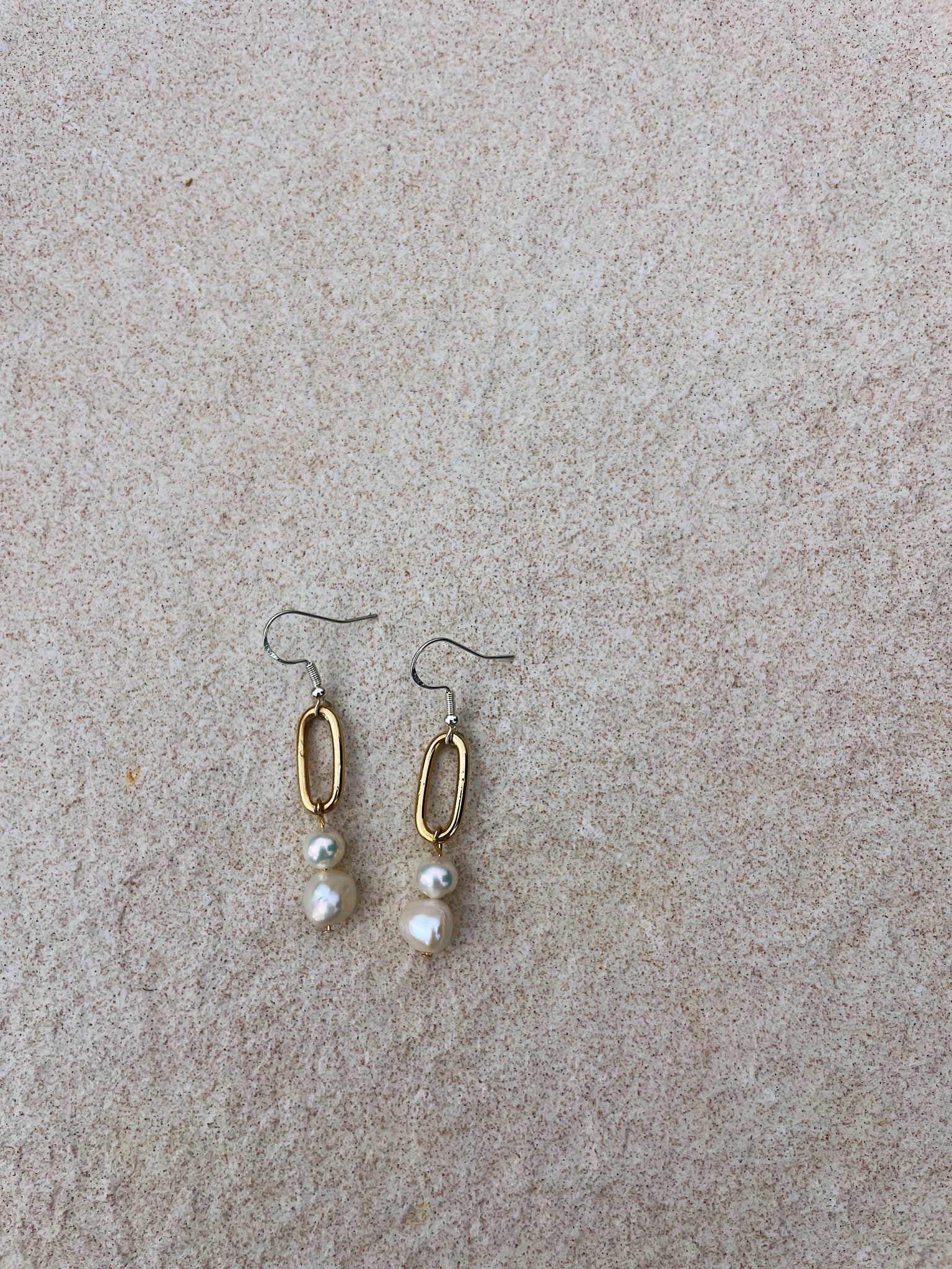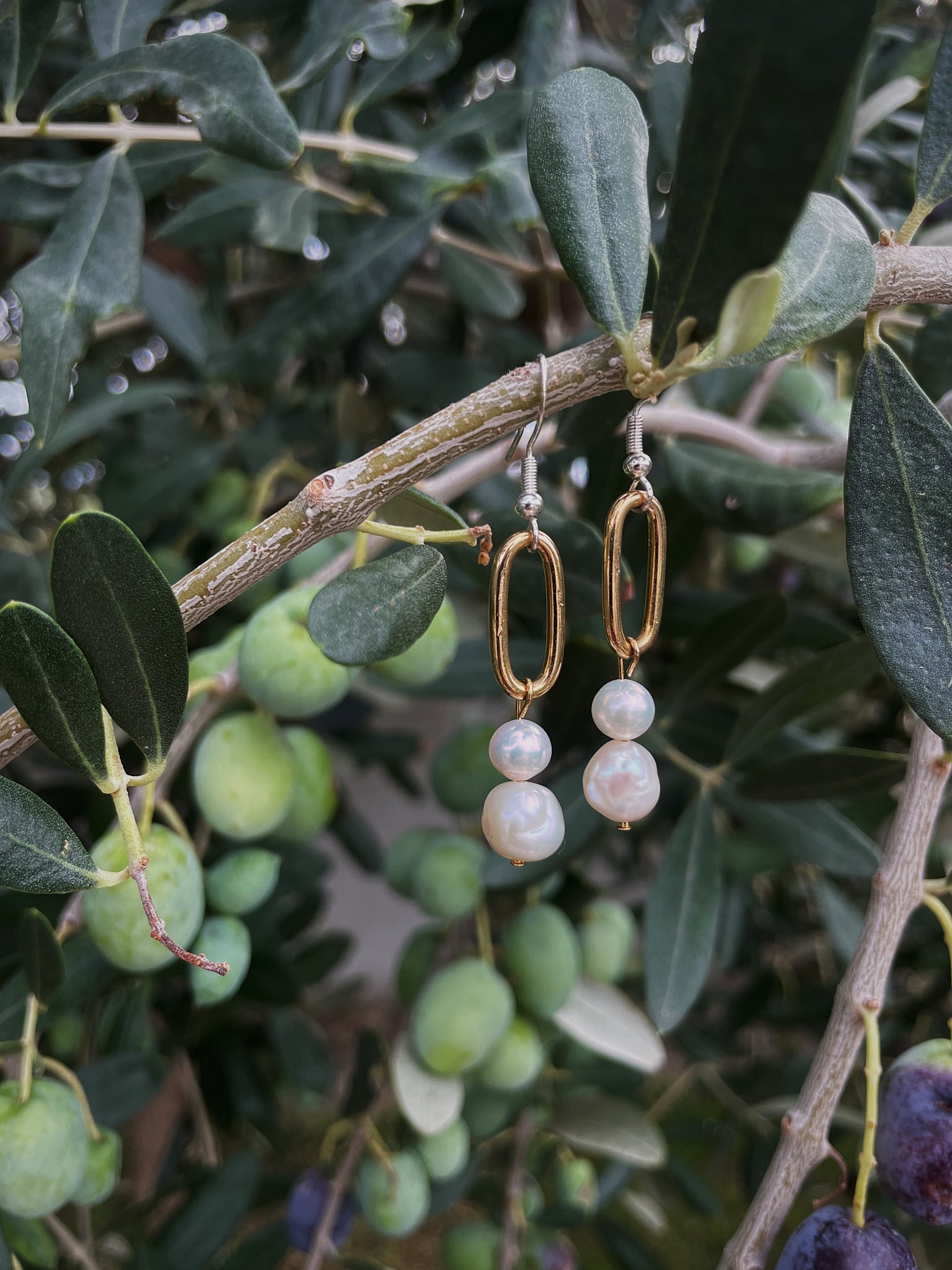 Handcrafted with double freshwater pearls and gold plated oval links.